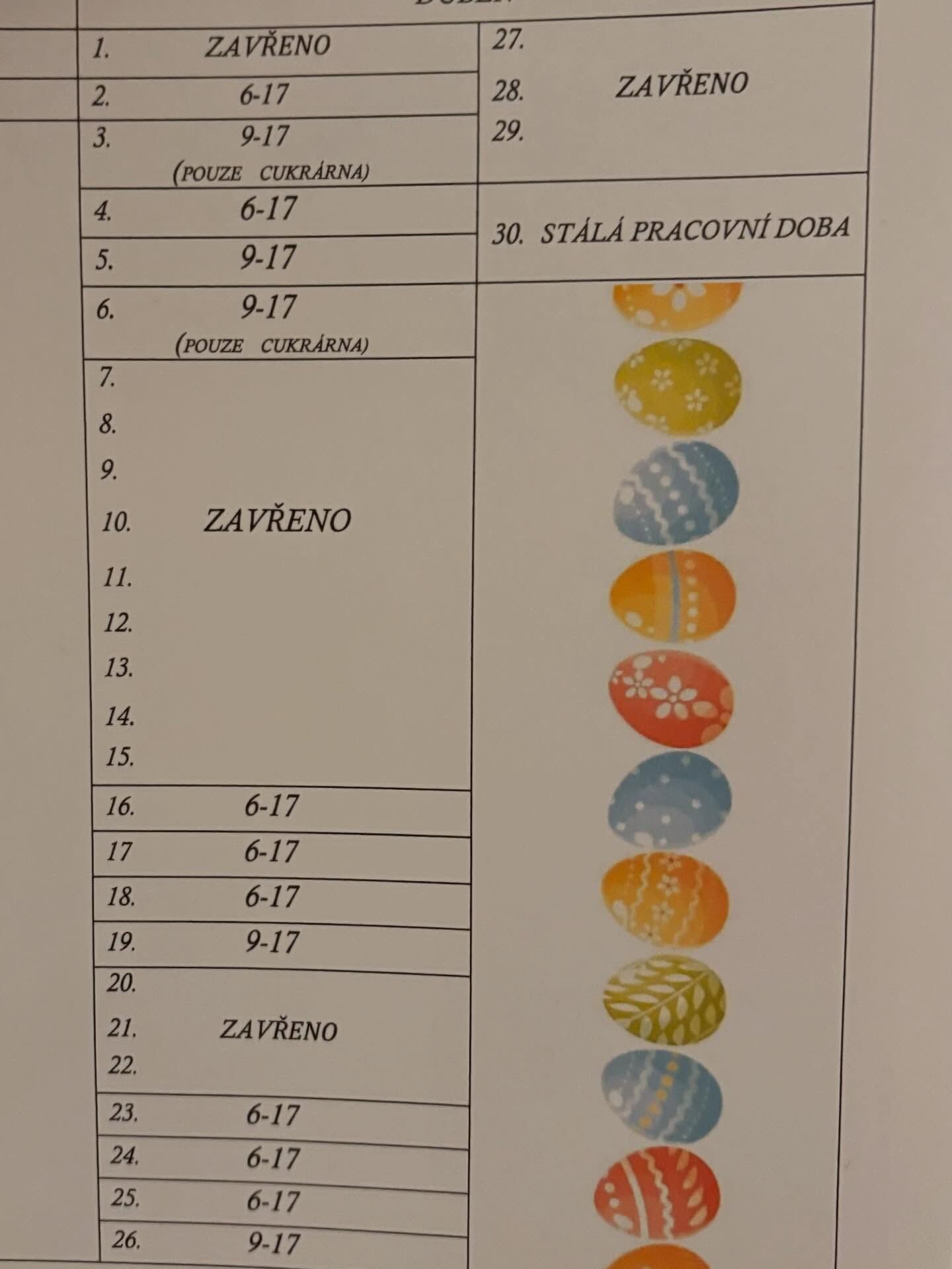 Pastry shop open daily from 9 am to 5 pm.